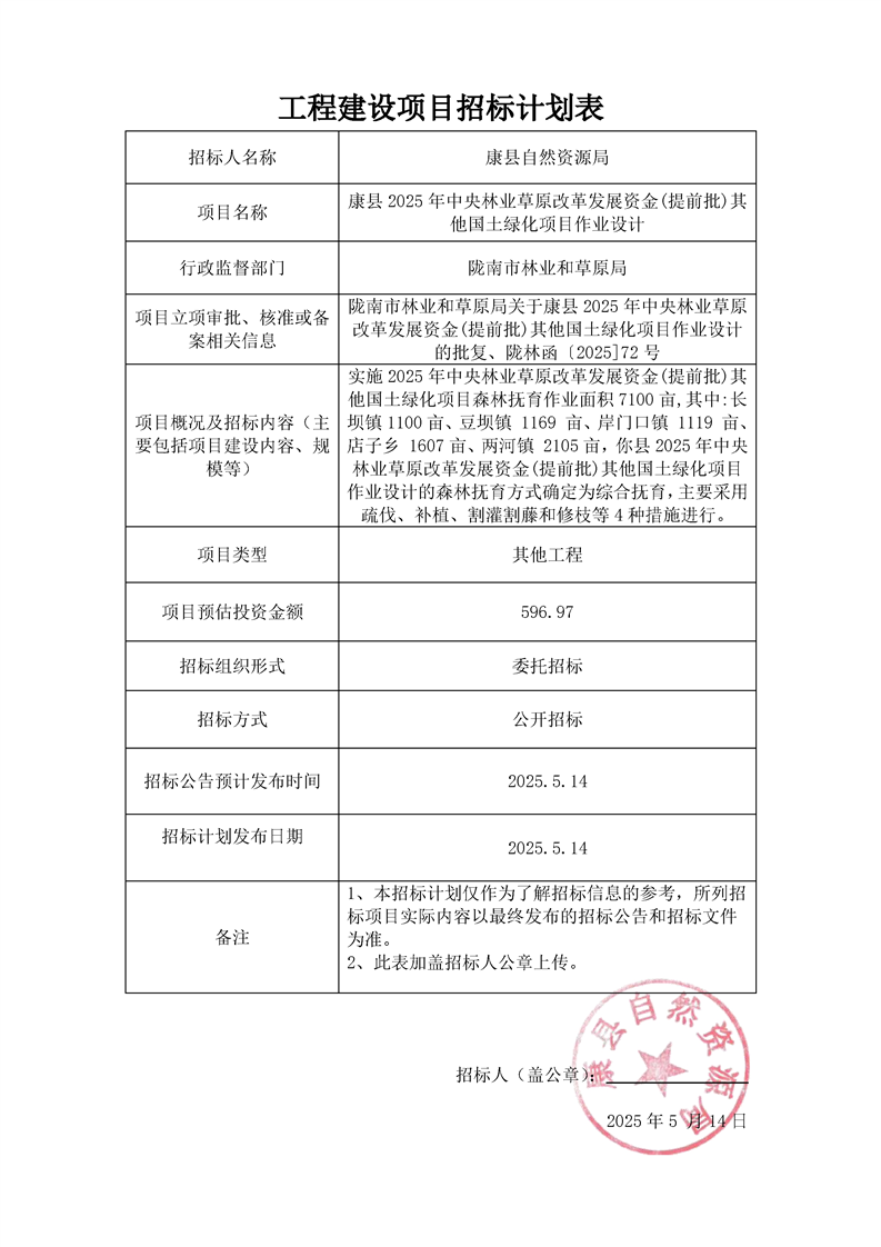康縣2025年中央林業(yè)草原改革發(fā)展資金(提前批)其他國土綠化項目作業(yè)設計