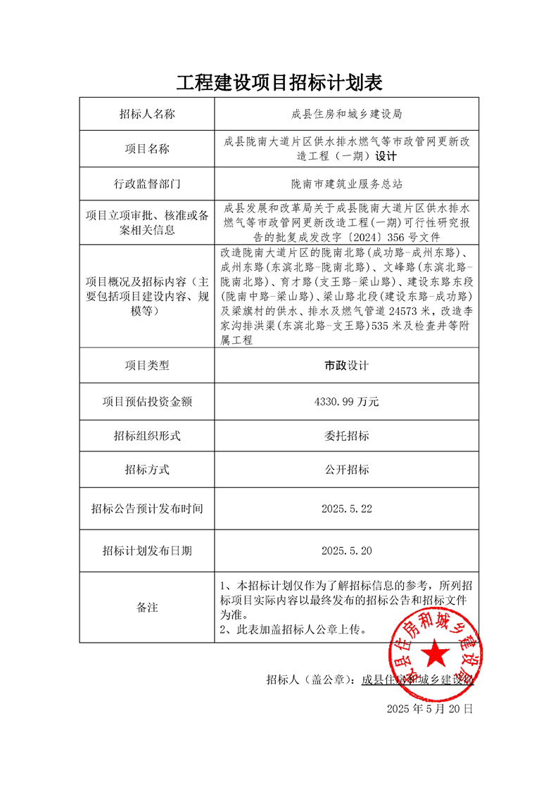成縣隴南大道片區(qū)供水排水燃?xì)獾仁姓芫W(wǎng)更新改造工程(一期)設(shè)計(jì)