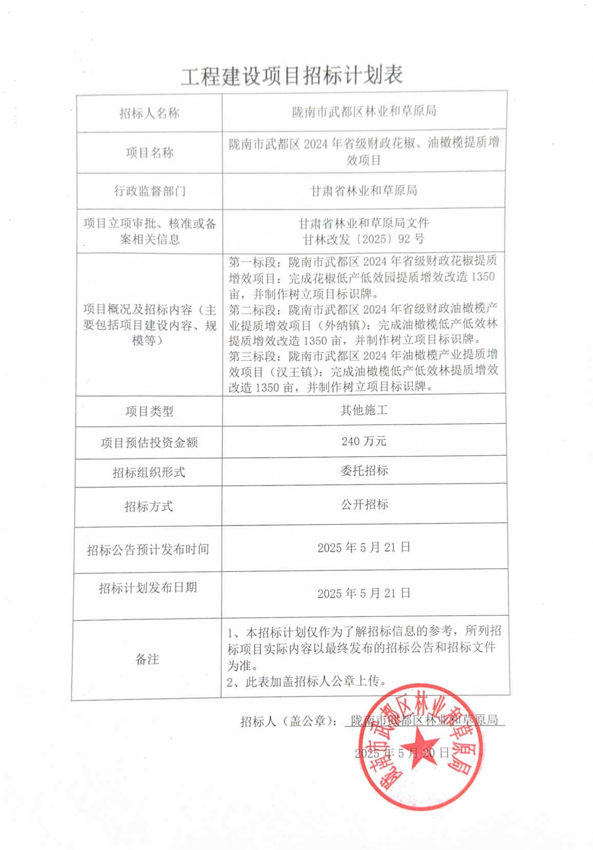隴南市武都區(qū)2024年省級財政花椒、油橄欖提質(zhì)增效項目