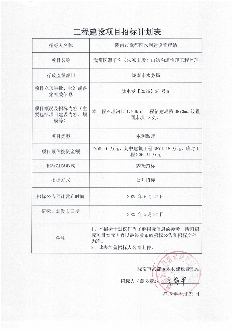 武都區(qū)渭子溝(朱家山段)山洪溝道治理工程監(jiān)理
