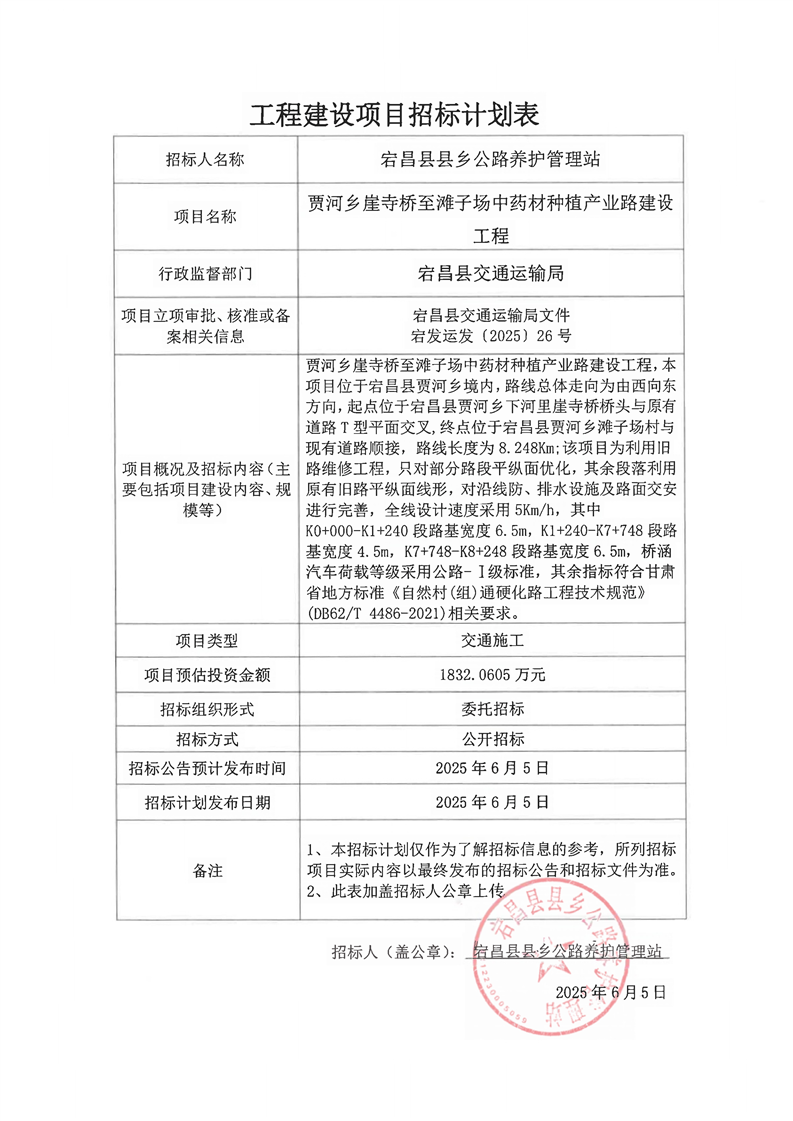 賈河鄉(xiāng)崖寺橋至灘子場(chǎng)中藥材種植產(chǎn)業(yè)路建設(shè)工程