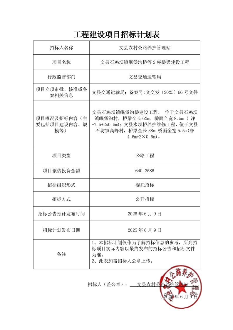 文縣石雞壩鎮(zhèn)岷堡溝橋等2座橋梁建設(shè)工程