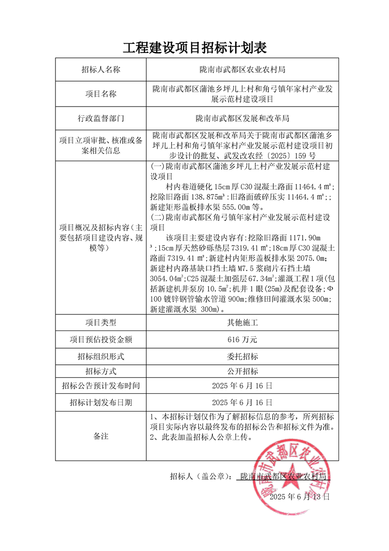 隴南市武都區(qū)蒲池鄉(xiāng)坪兒上村和角弓鎮(zhèn)年家村產業(yè)發(fā)展示范村建設項目