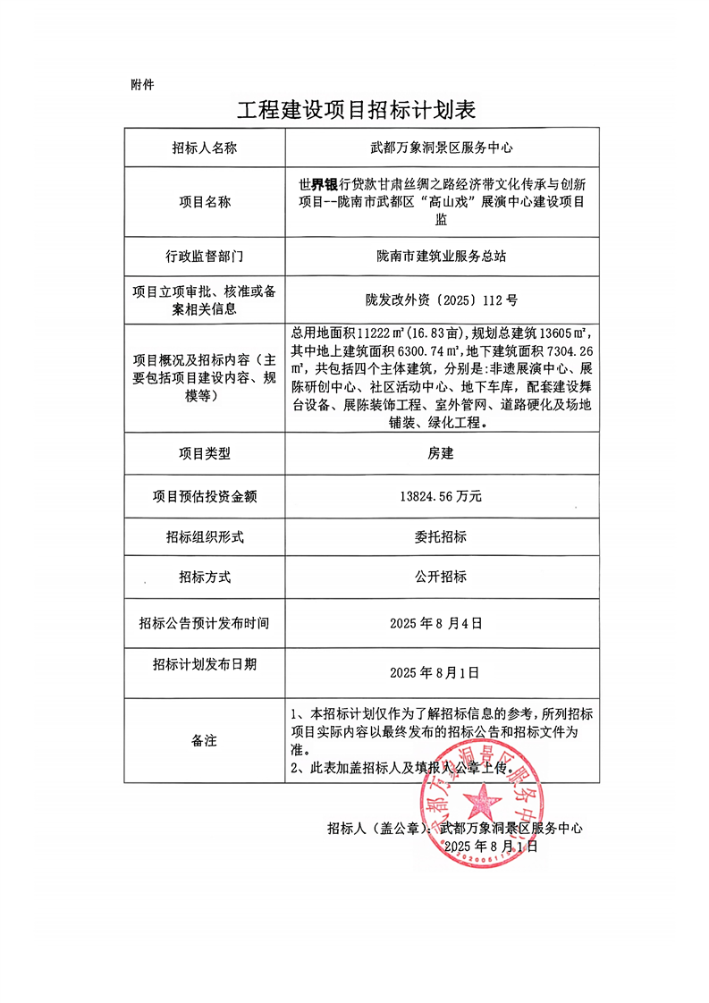 世界銀行貸款甘肅絲綢之路經(jīng)濟帶文化傳承與創(chuàng)新項目--隴南市武都區(qū)“高山戲”展演中心建設(shè)項目監(jiān)理