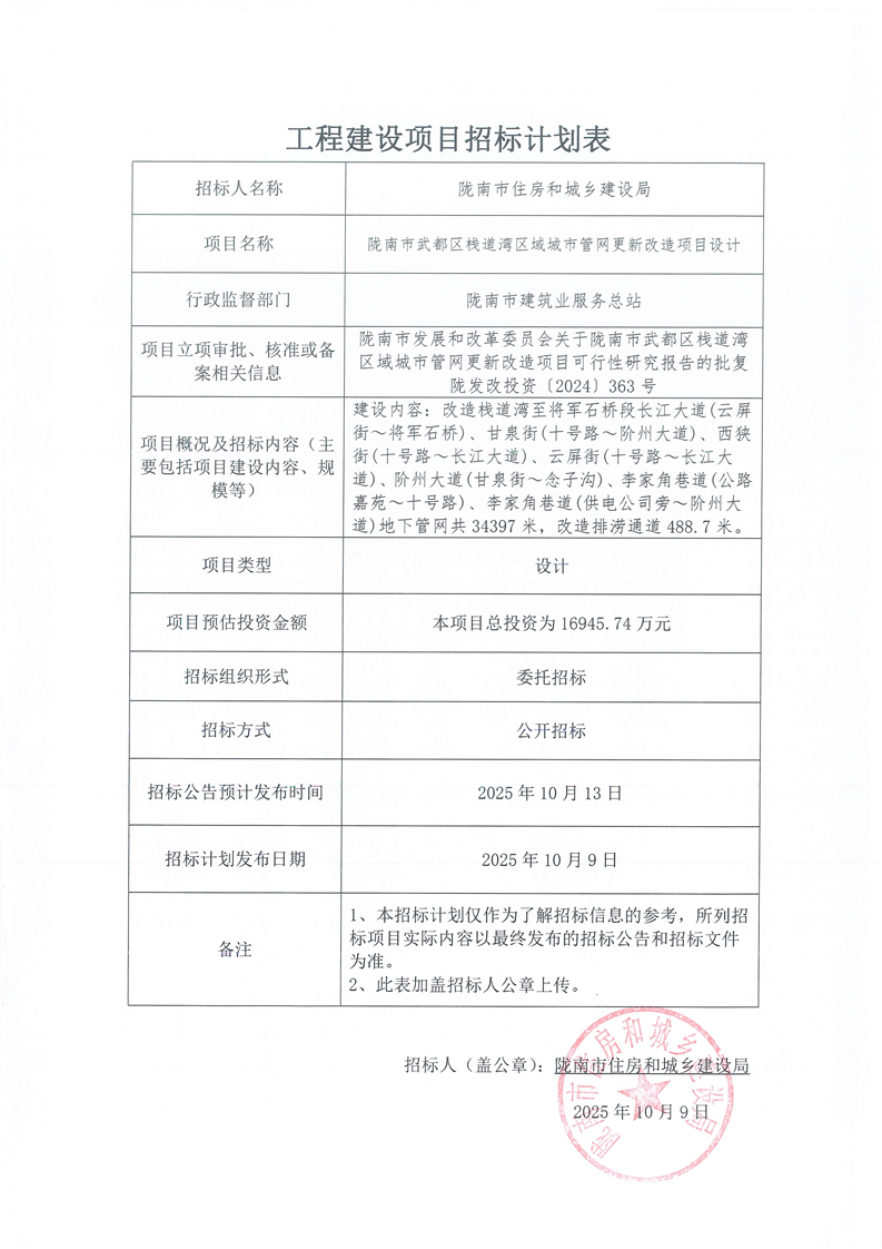 隴南市武都區(qū)棧道灣區(qū)域城市管網(wǎng)更新改造項(xiàng)目設(shè)計(jì)