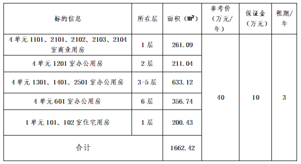 4、本次拍賣按標(biāo)的物現(xiàn)狀拍賣,標(biāo)的詳情及其他事項等詳見《辦公及商業(yè)房地產(chǎn)租賃權(quán)拍賣文件》。