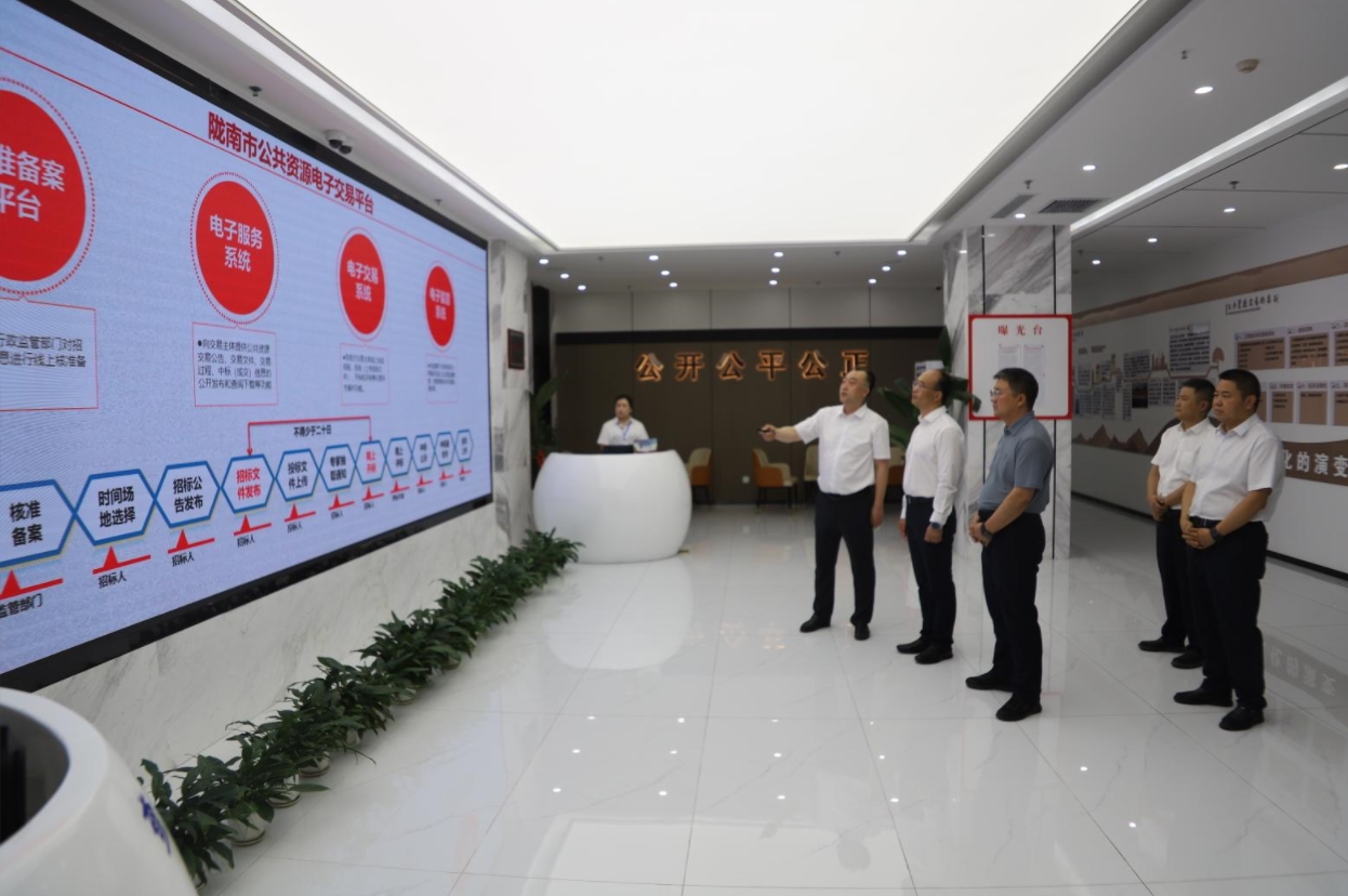 在調(diào)研過(guò)程中,李榮先后察看了交易服務(wù)大廳、網(wǎng)上開(kāi)標(biāo)直播大廳、專(zhuān)家抽取室、封閉評(píng)標(biāo)區(qū)、多功能交易廳、黨建活動(dòng)中心、行業(yè)監(jiān)管區(qū)、電子檔案管理室等運(yùn)行情況,現(xiàn)場(chǎng)認(rèn)真聽(tīng)取了有關(guān)情況的匯報(bào)。對(duì)交易中心在場(chǎng)所設(shè)施保障、推行全流程電子化交易、黨建與業(yè)務(wù)融合發(fā)展、營(yíng)造良好營(yíng)商環(huán)境等方面工作給予了充分肯定。