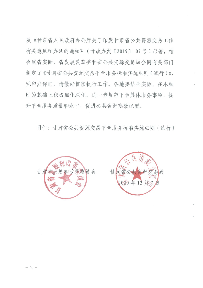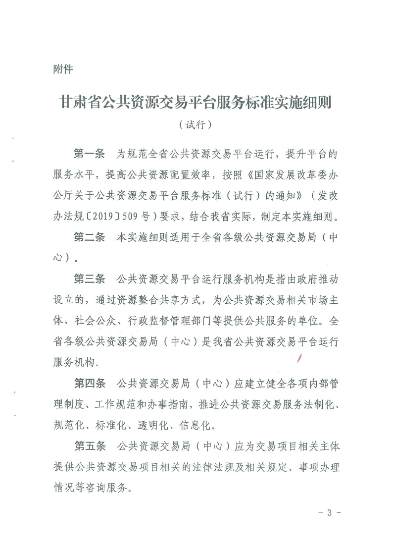省發(fā)改委省公共資源交易局關(guān)于印發(fā)《甘肅省公共資源交易平臺(tái)服務(wù)標(biāo)準(zhǔn)實(shí)施細(xì)則(試行)》的通知